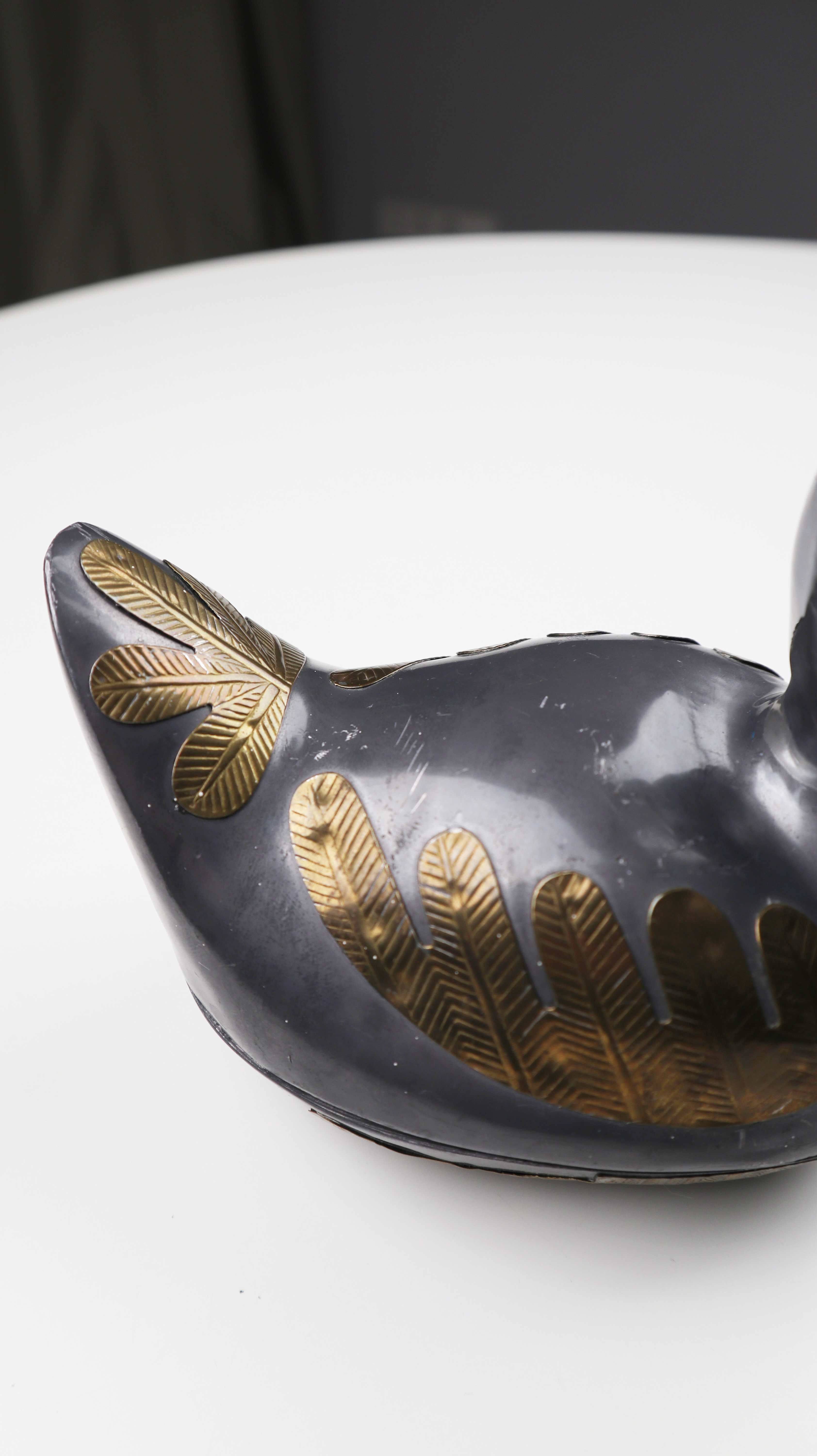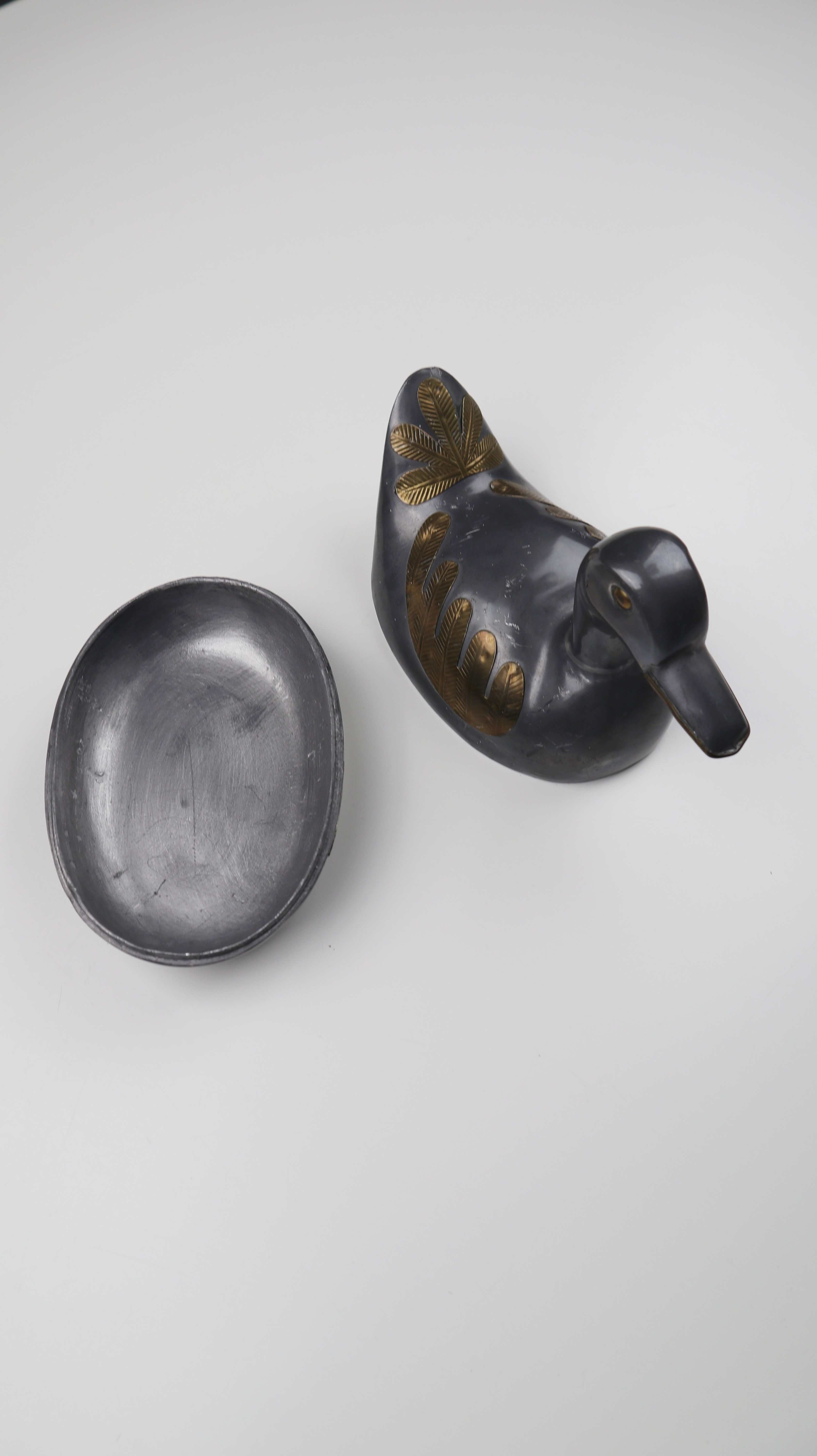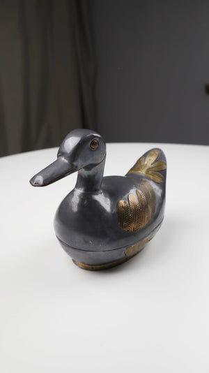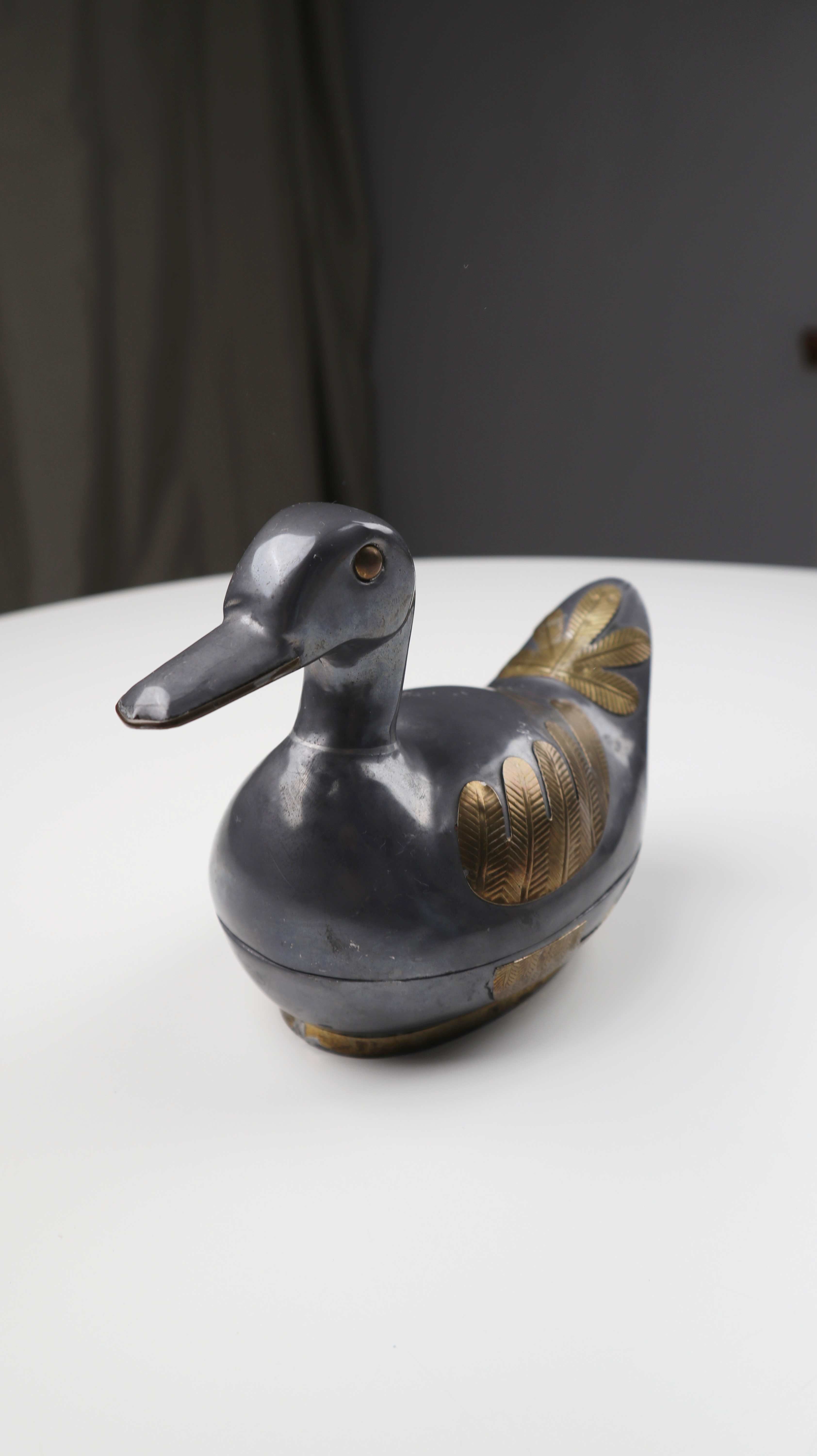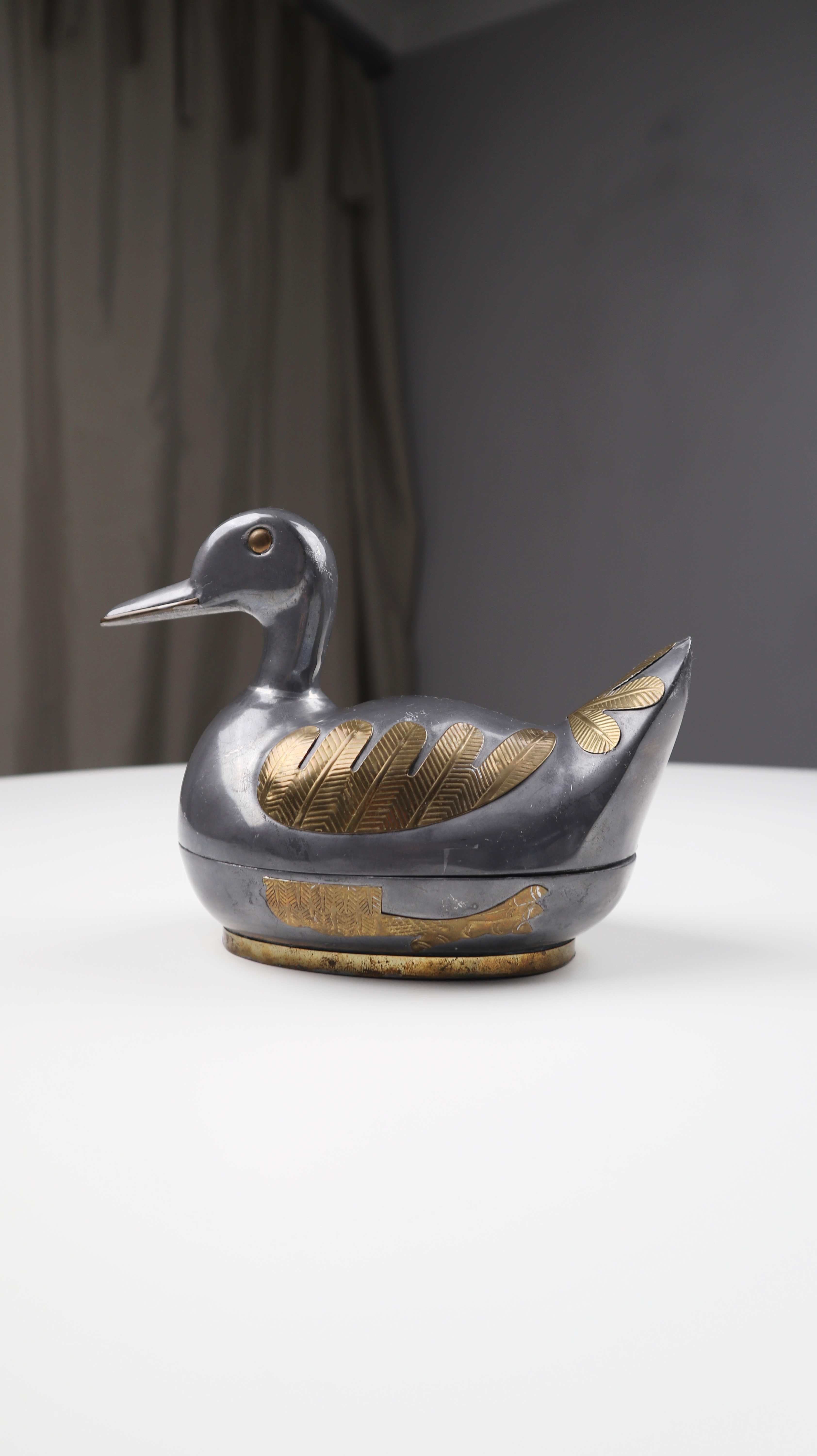 Zinn Messing Ente Dose silber Metall Metalldose Entenform Tierform Gold beschlagen