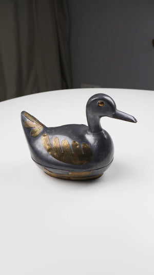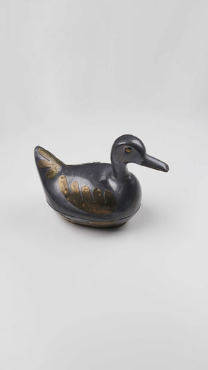 Metalldose in Form einer Ente, welche man öffnen kann. Plus Versand