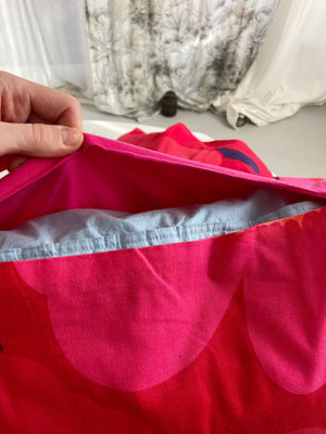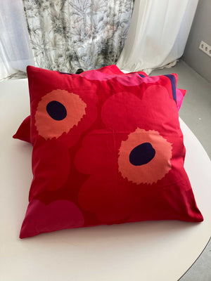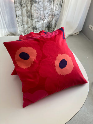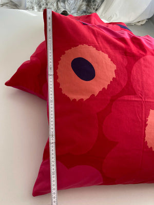 Zwei gefüllte, große und selbstgenähte Kissen mit Marimekkomotiv. Der Stoff ist Original von Marimekko. Plus Versand