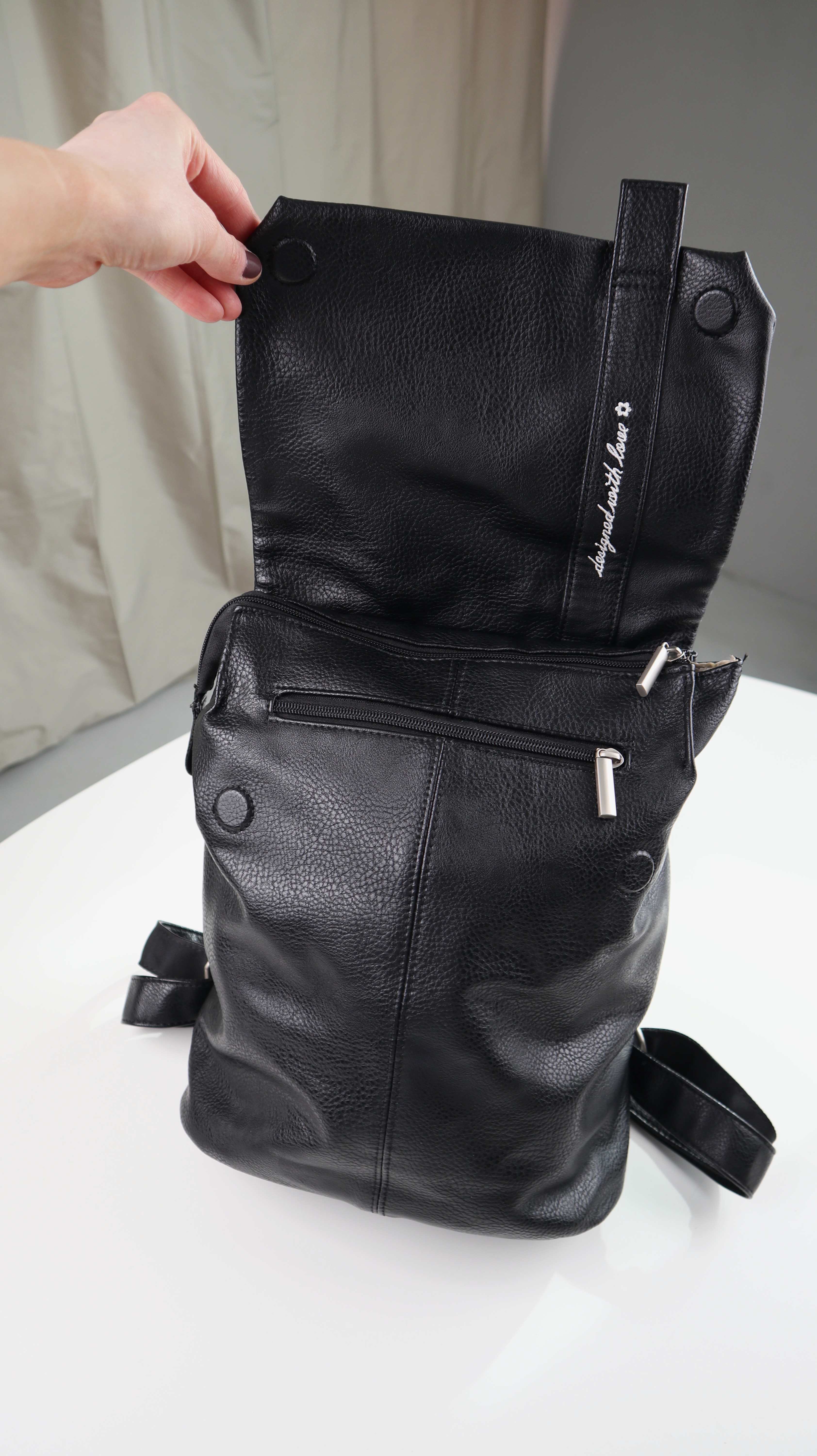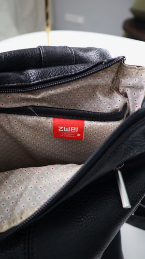 Schwarzer Lederrucksack von Zwei in einem sehr guten Zustand. Innen Stoff und viele Fächer. Plus Versand