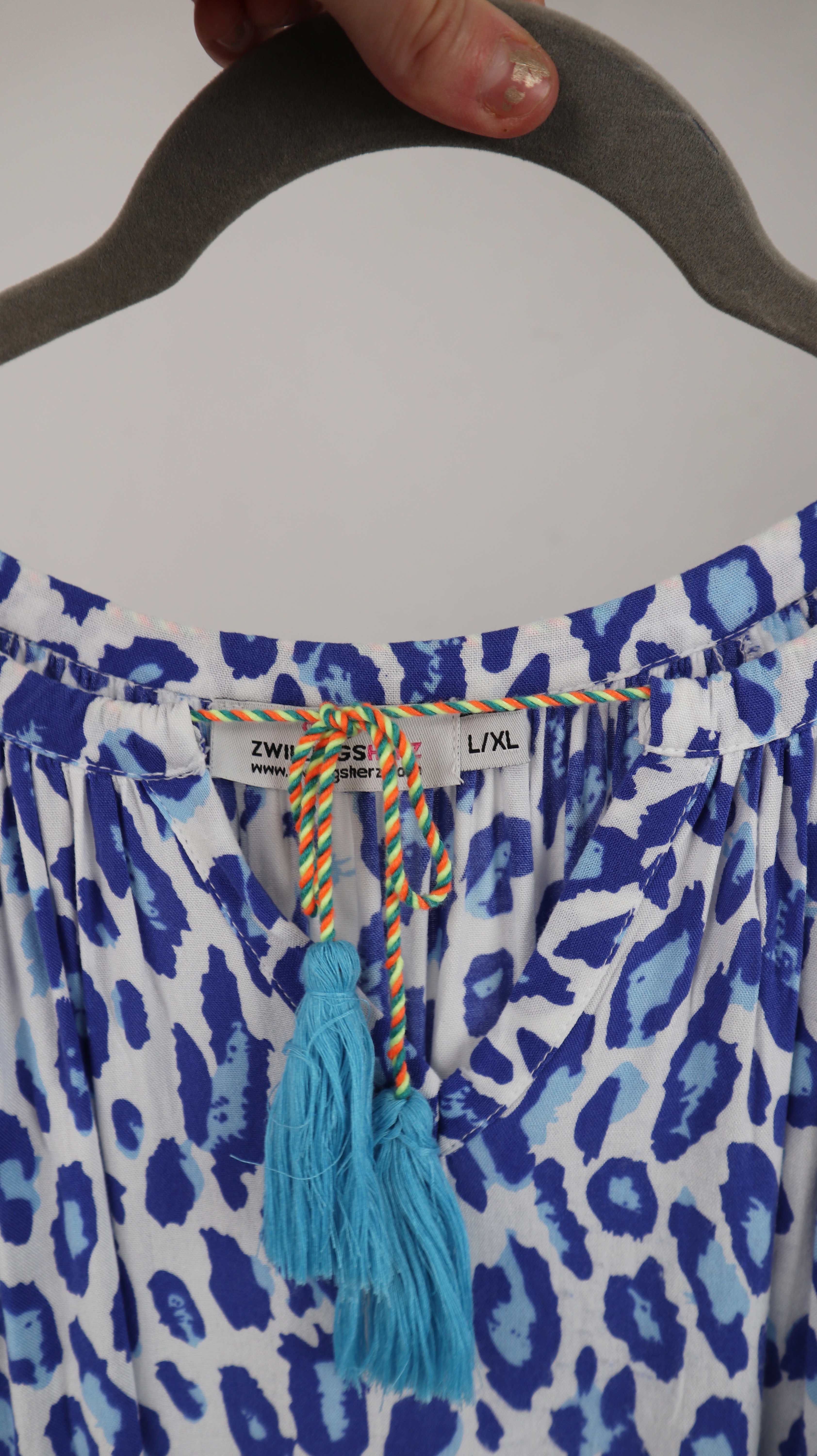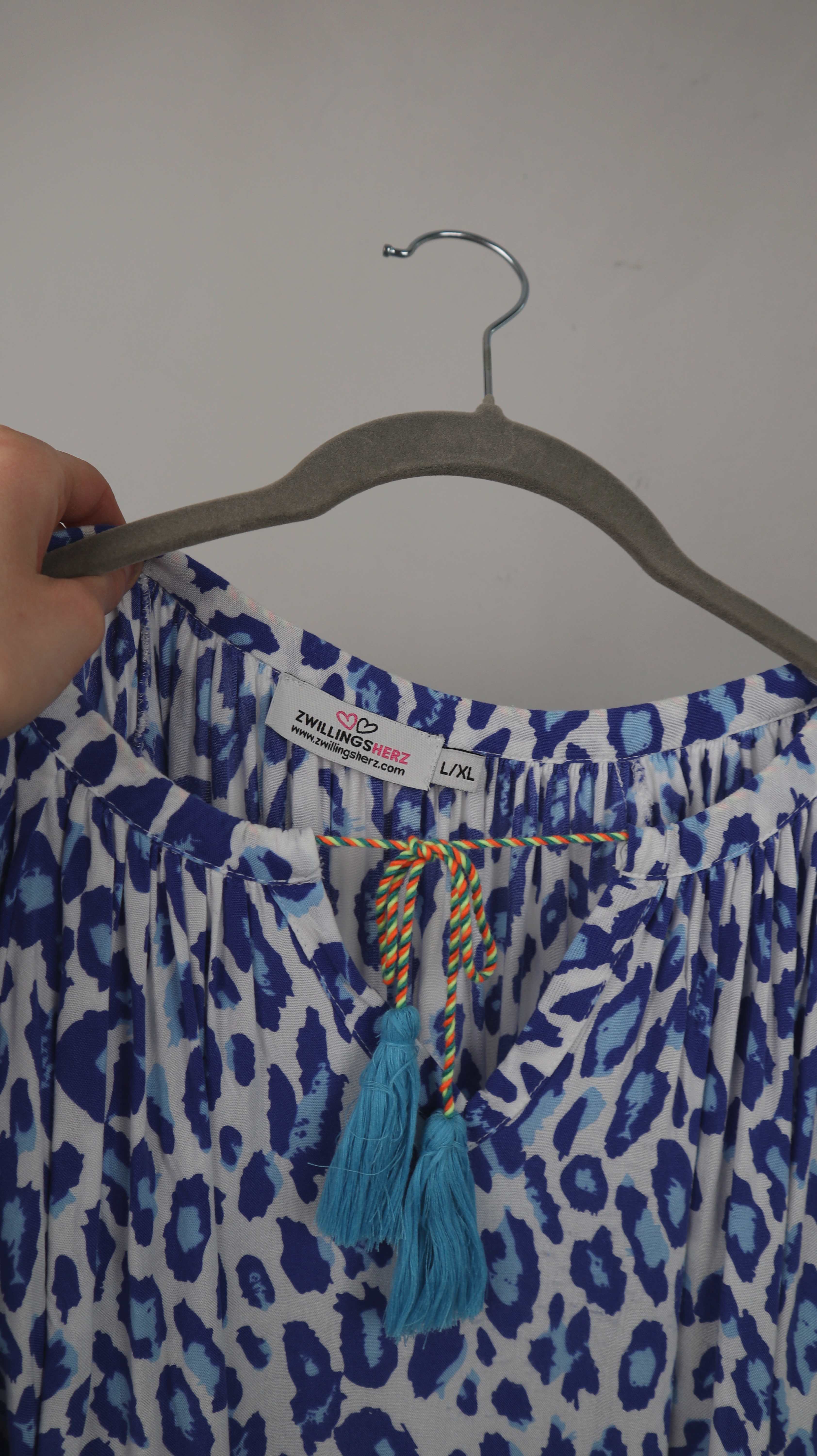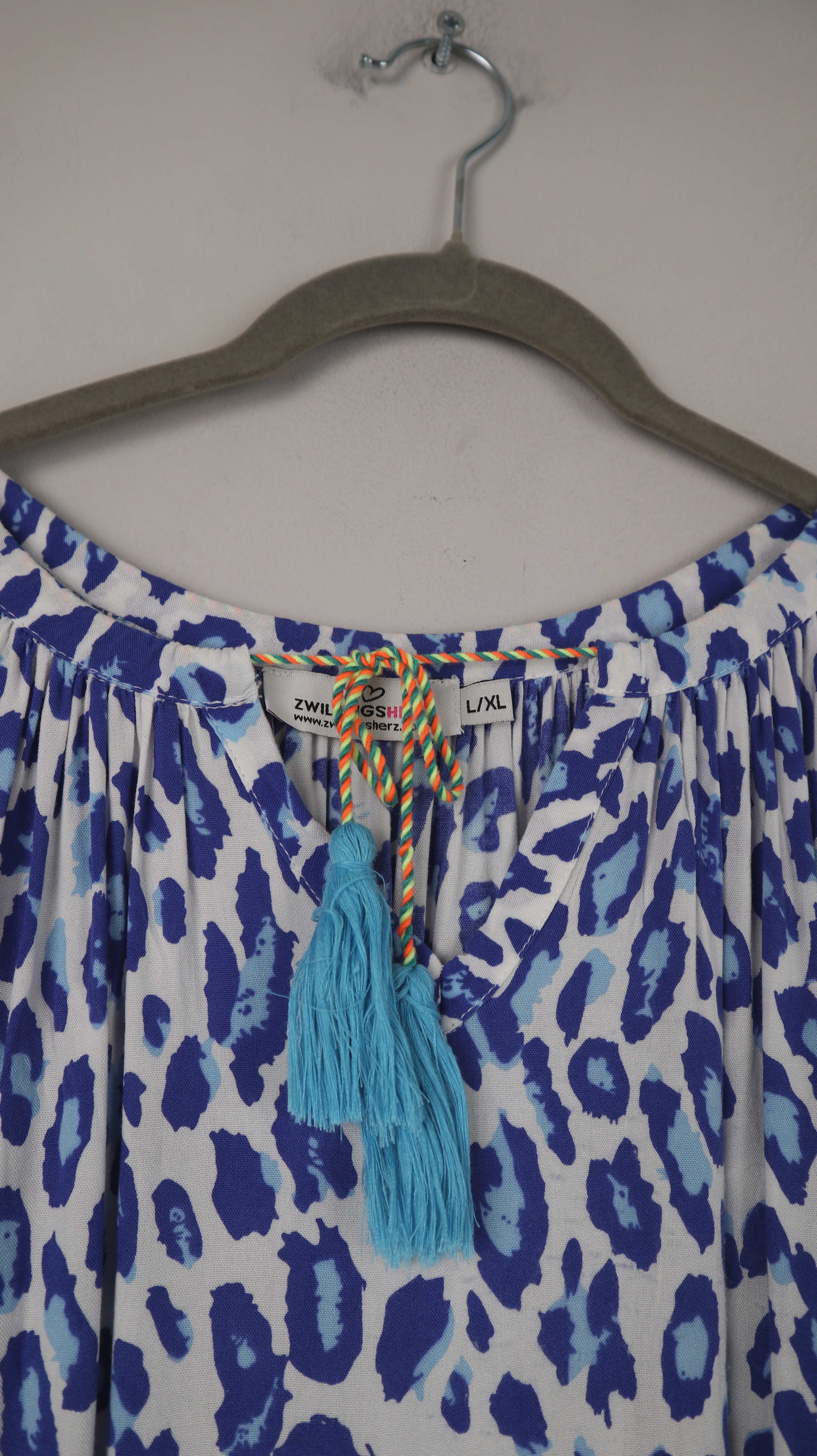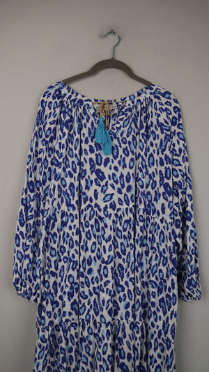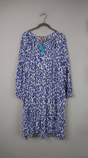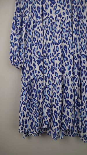 Zwillingsherz Kleid blau weiß Midi Midikleid Leo Leopardenmuster 40 L XL